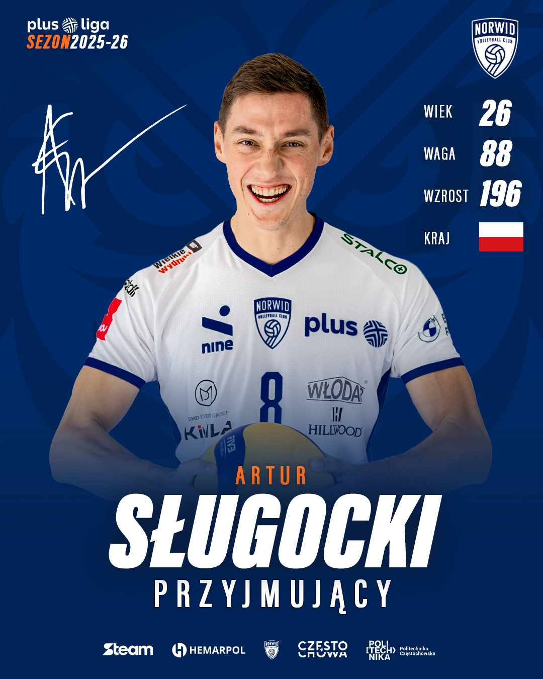 Kolejna dobra wiadomość dla kibiców Norwida Częstochowa – przyjmujący Artur Sługocki nadal będzie reprezentował błękitno-granatowe barwy. Dla przyjmującego będzie to drugi sezon z rzędu w klubie spod Jasnej Góry.